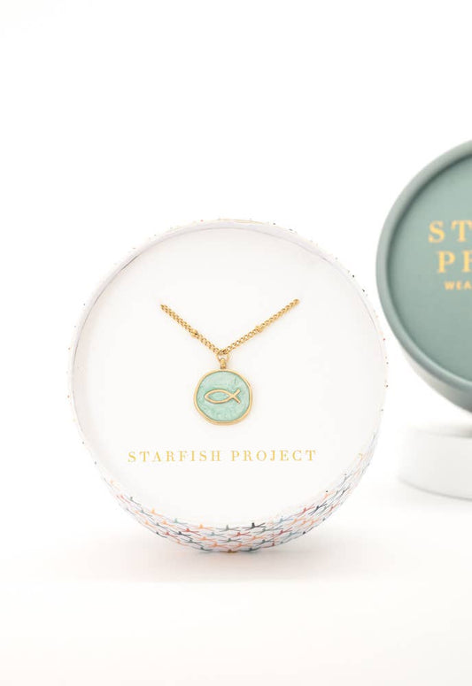 Ichthus Fish Necklace in Mint- 14K Gold Plated Christian Cross Necklace